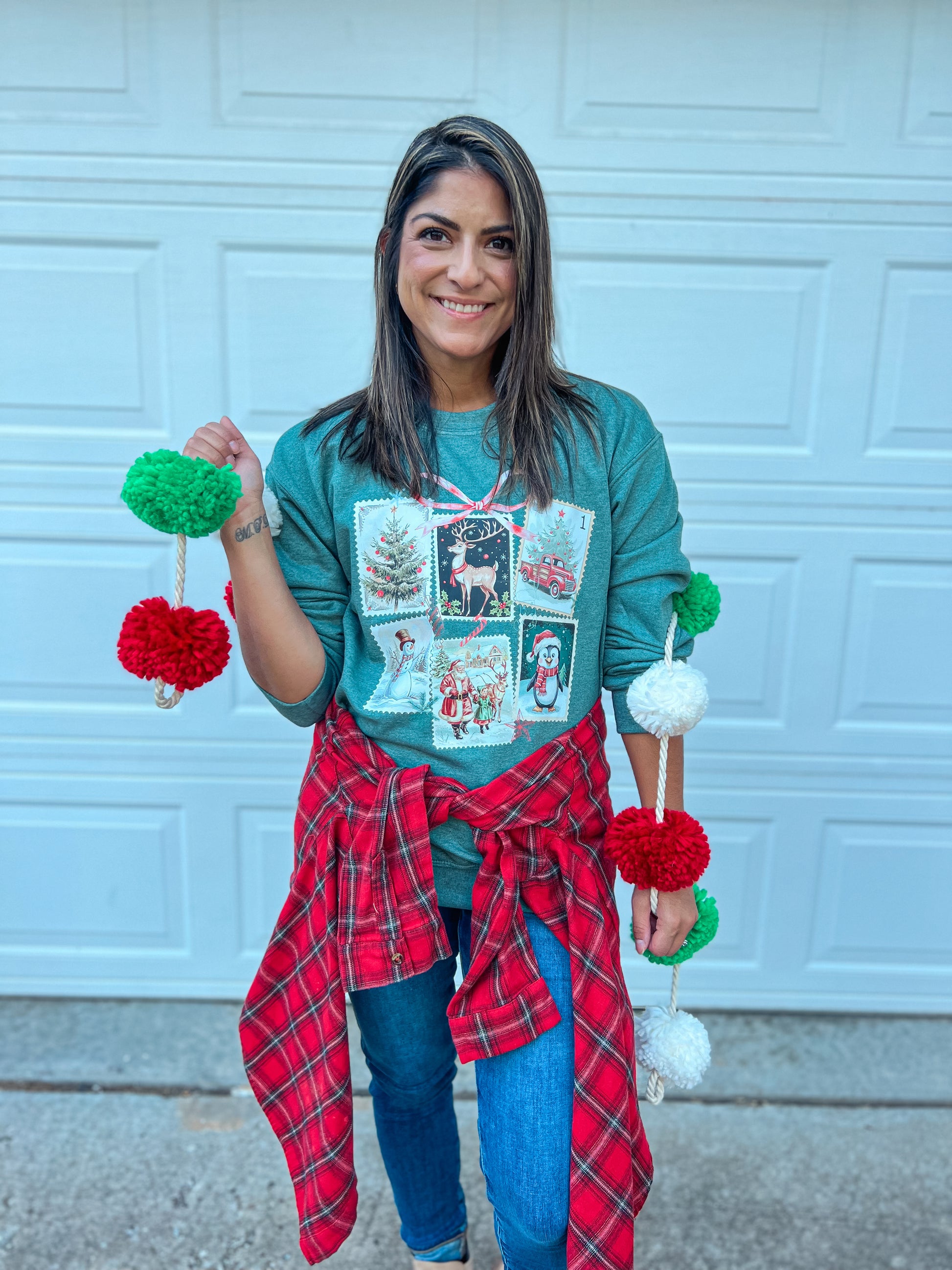 CHRISTMAS STAMPS SWEATSHIRT (H GREEN)
